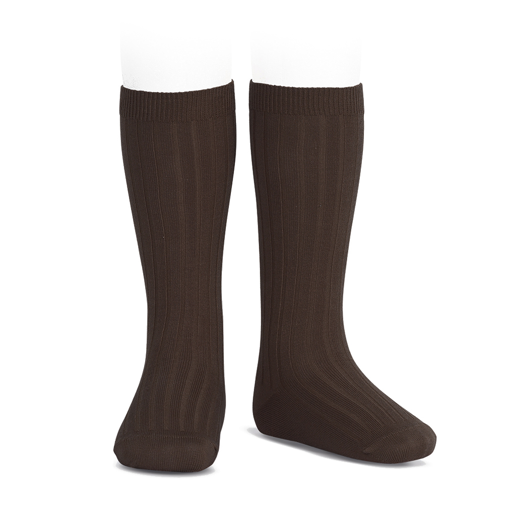 Calze lunghe a coste in cotone. Disponibili in più di 60 colori. Può essere abbinato con i cardigan tricot e gli accessori per i capelli.