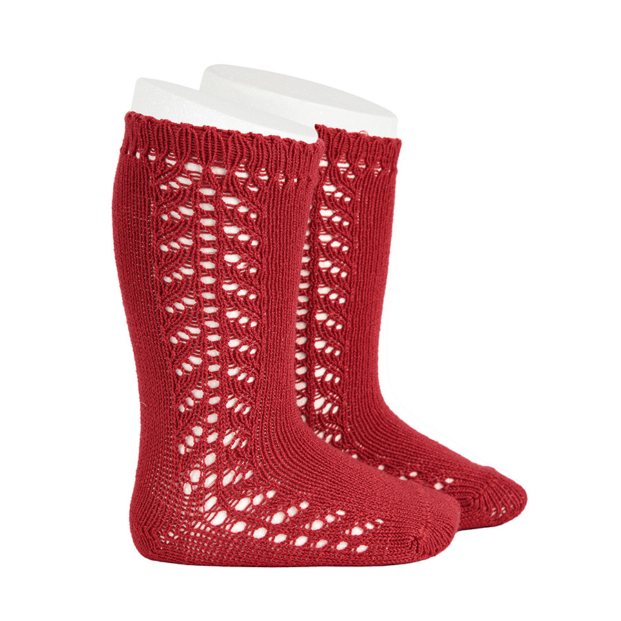 Calze lunghe da neonato in cotone caldo con traforato sul lato.