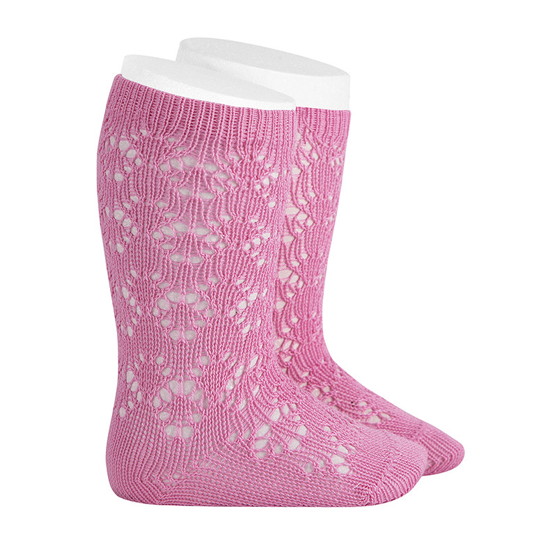 Calze lunghe primaverlili in cotone traforte con motivo geometrico. Disponibili da 0-3 mesi a 8 anni.