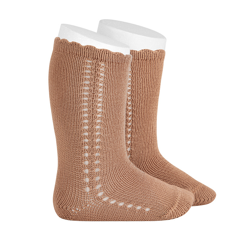Calze lunghe 100% cotone con traforato sul lato. Ideali per primavera. Disponibili da 0-3 mesi a 6 anni.