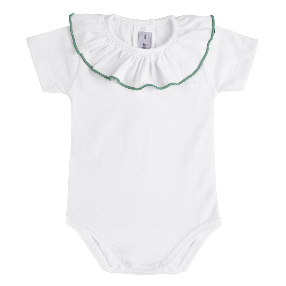 Body in cotone con piccolo cuore ricamato e colletto con punto smerlato in colore a contrasto.