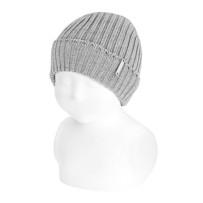 Cappello a coste per neonati da 0 a 24 mesi. Da abbinare al maglione, culotte e pagliaccetto a coste. 100% cotone.