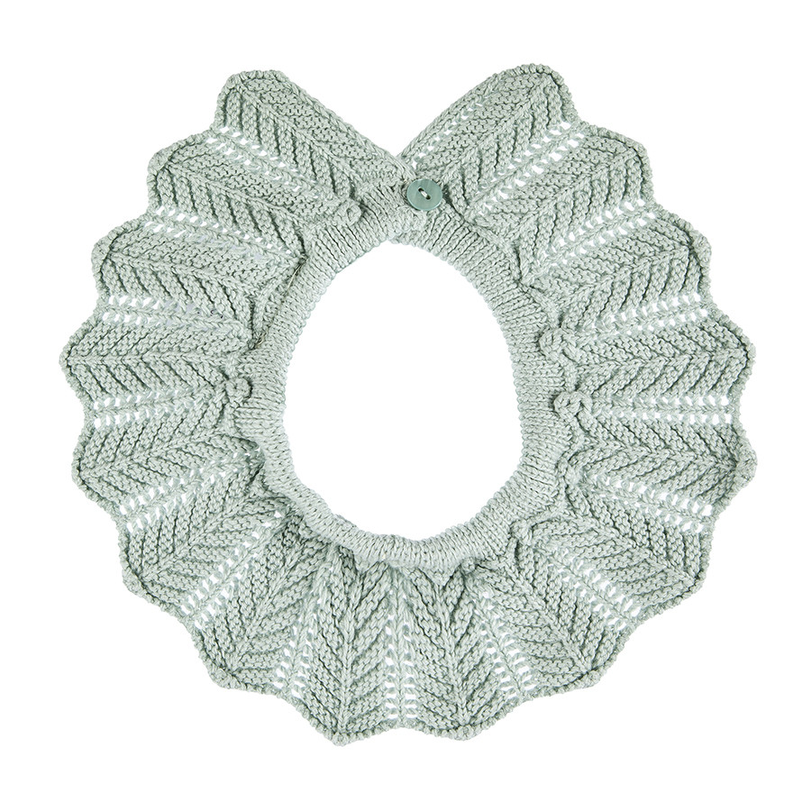 Cuello de punto links calado para bebé. Abrochado con botón de madera.