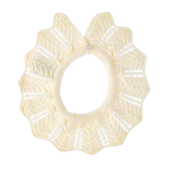 Cuello de punto links calado para bebé. Abrochado con botón de madera.