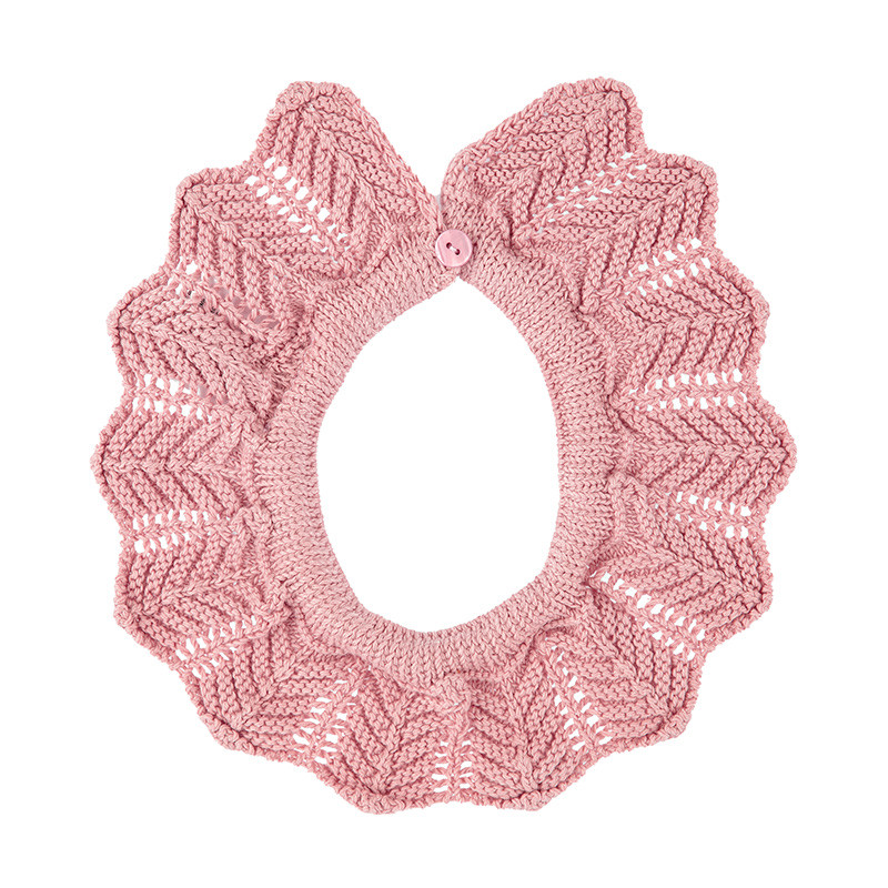 Cuello de punto links calado para bebé. Abrochado con botón de madera.