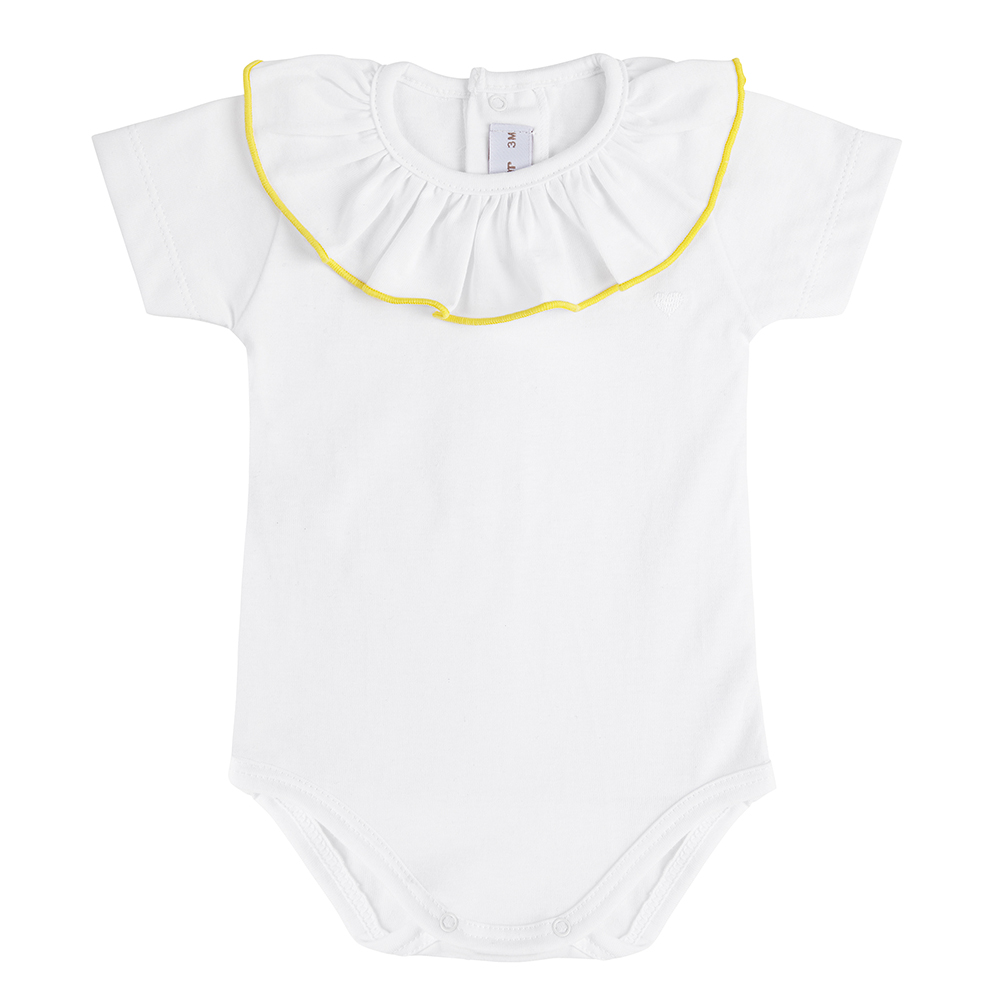 Body de algodón con pequeño corazón bordado y cuello con puntada festón de color a contraste.