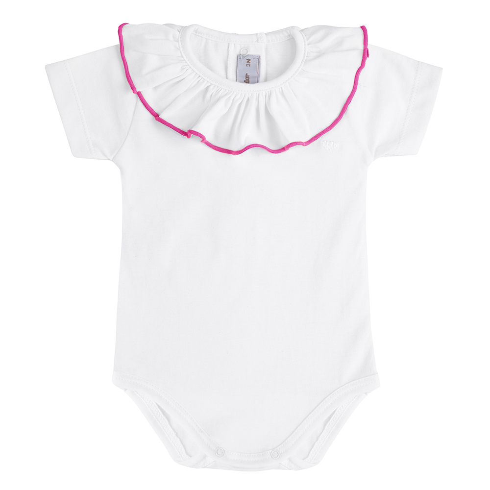 Body de algodón con pequeño corazón bordado y cuello con puntada festón de color a contraste.