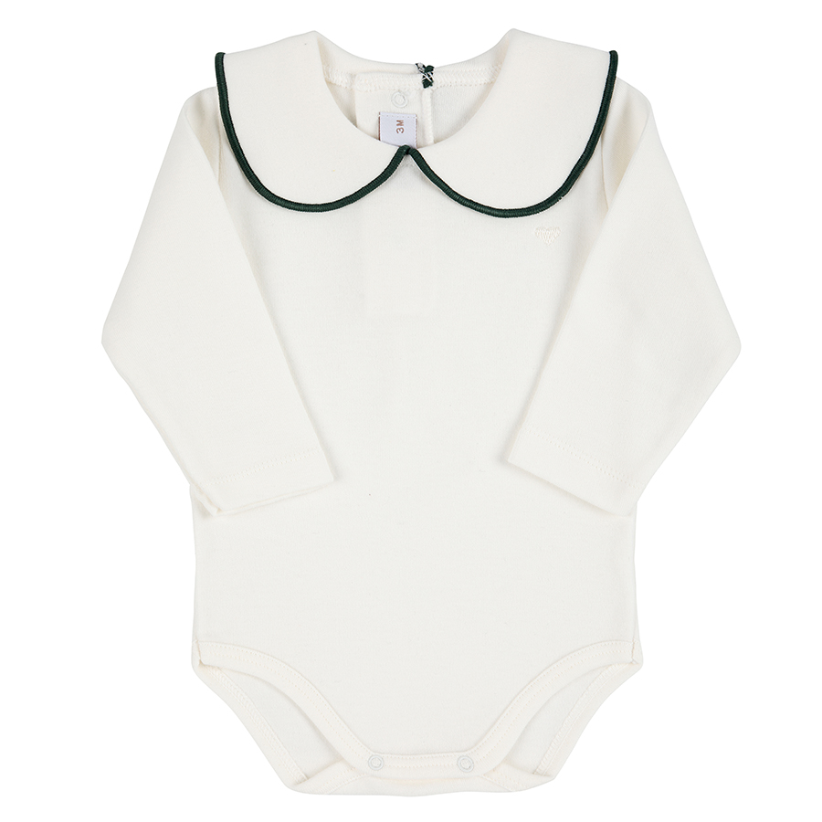 Body para bebé con corazón bordado en el pecho y cuello redondo con festón de color.