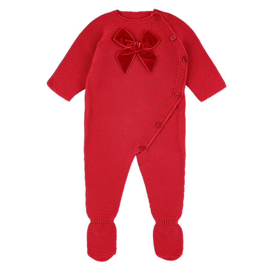 Pelele para bebé 100 % algodón en punto bobo con lazo de terciopelo a tono.