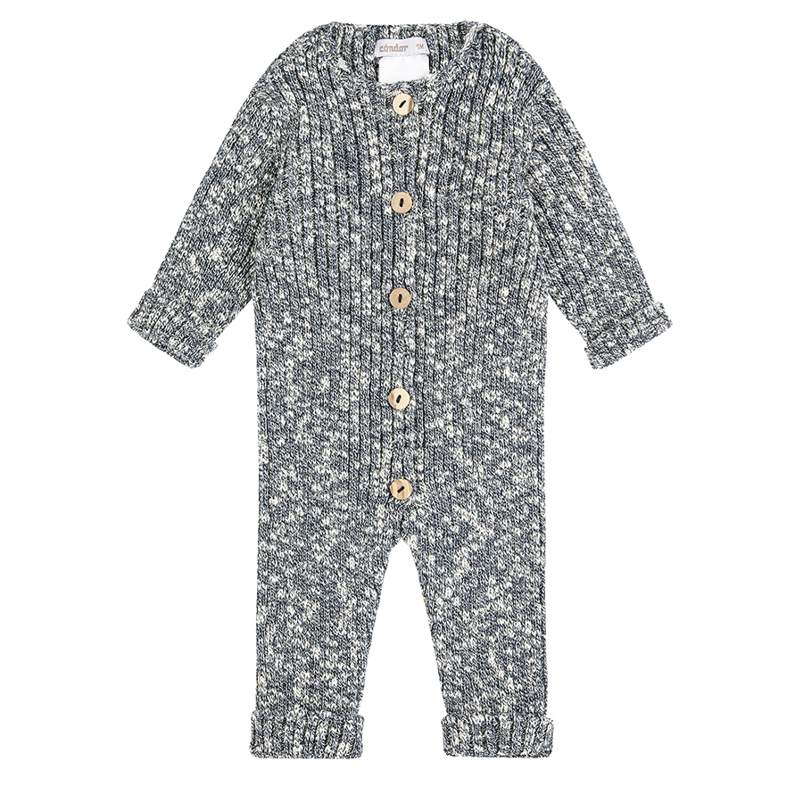 Pelele para bebé en torzal 100% algodón en canalé. Abrochado con botones de madera en la parte delantera.