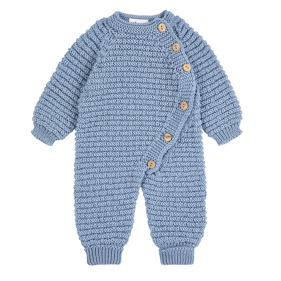 Pelele de punto en mezcla lana merino con textura punto grueso. Abrochado con botones.