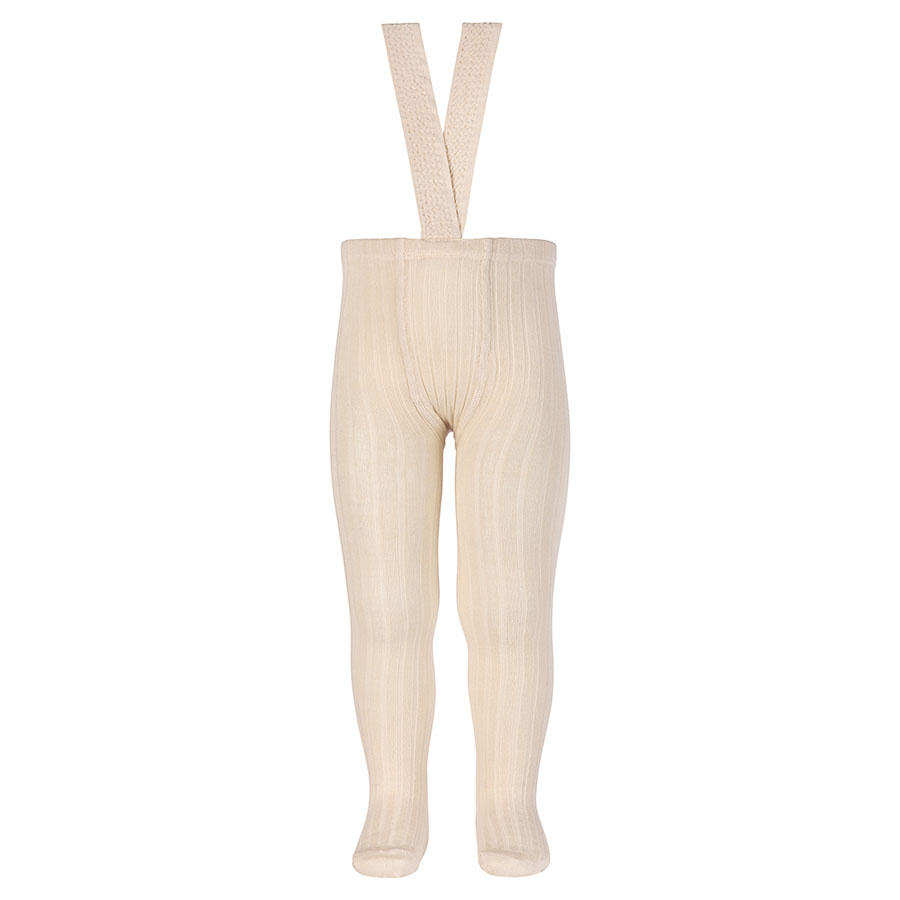 Leotardos de canalé con tirantes elásticos al tono. Tallas de 3 meses a 4 años.