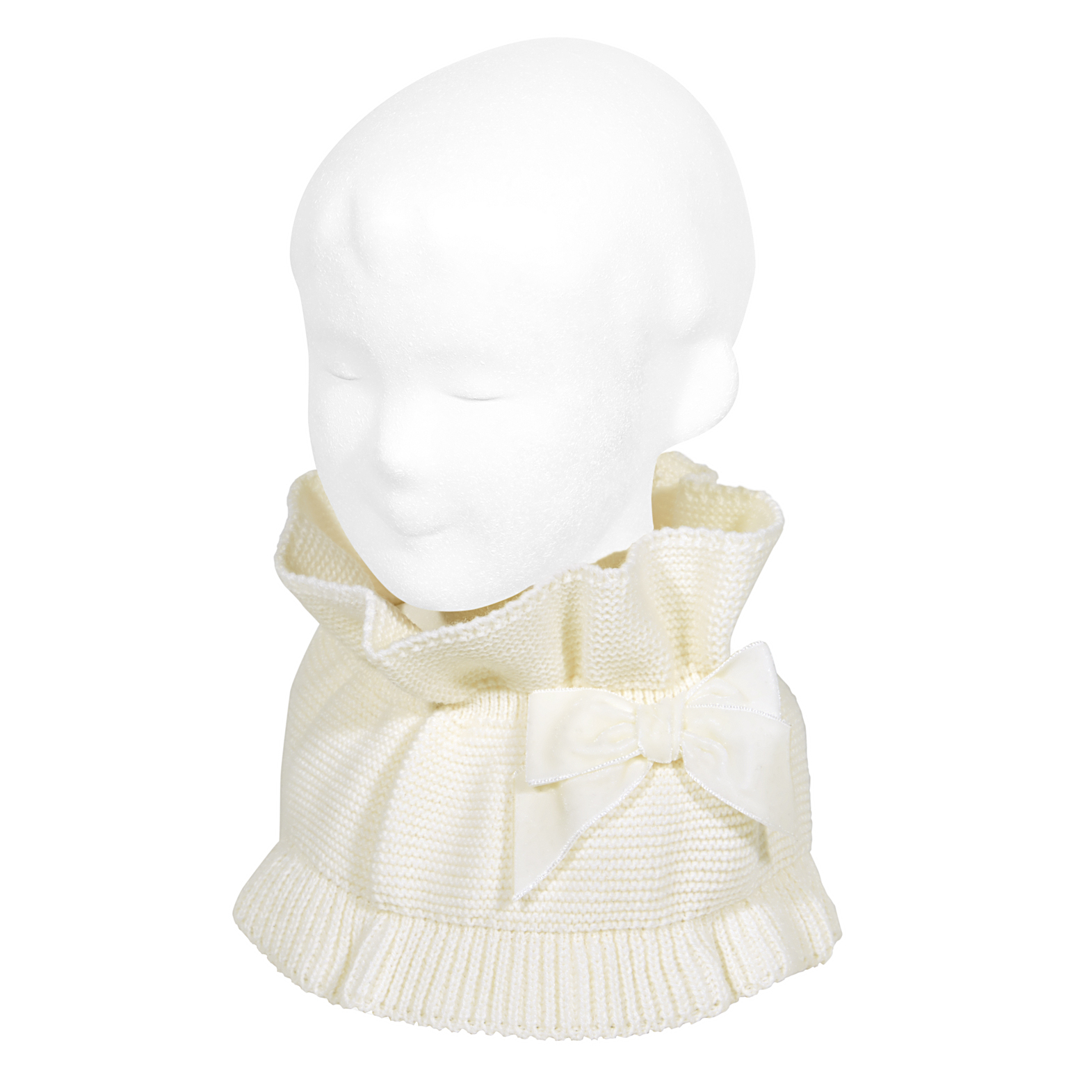 Cuello punto bobo fruncido con lazo terciopelo para niña.