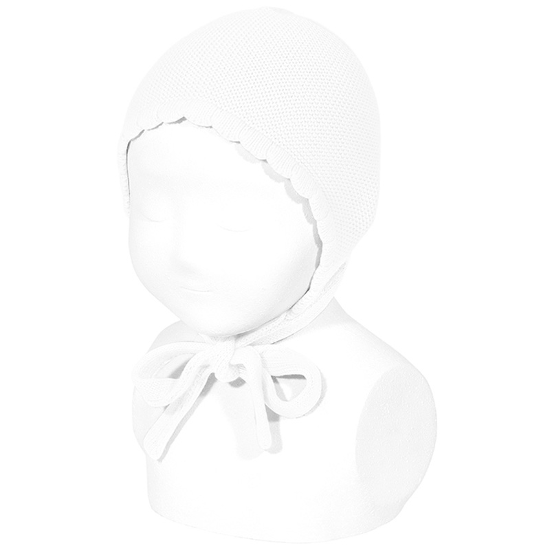 Cuello de punto links calado para bebé. Abrochado con botón de madera.