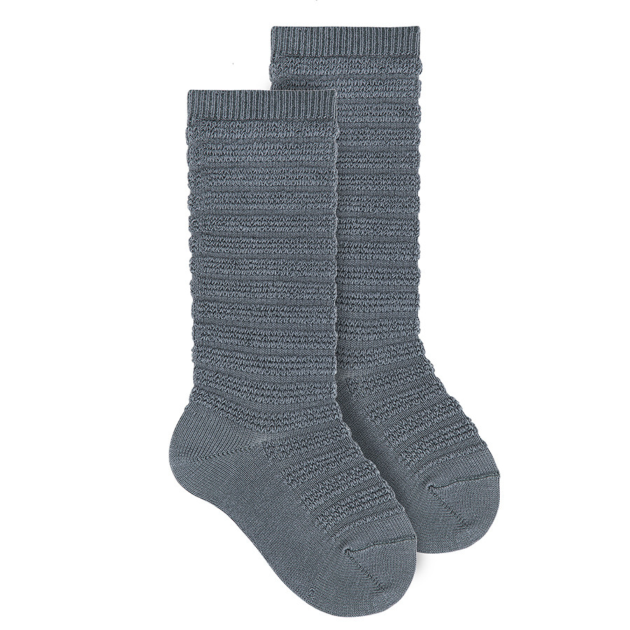 Calcetines altos con relieve horizontal. Tallas de bebé recién nacido hasta 6 años.