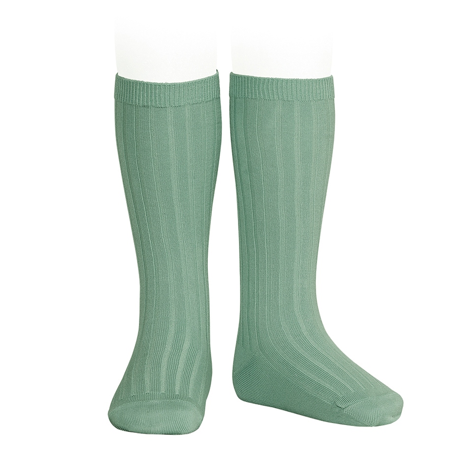 Calcetines altos básicos en canalé de algodón. Disponible en más de 60 colores. Conjunta con las chaquetas de punto y complementos para el pelo.