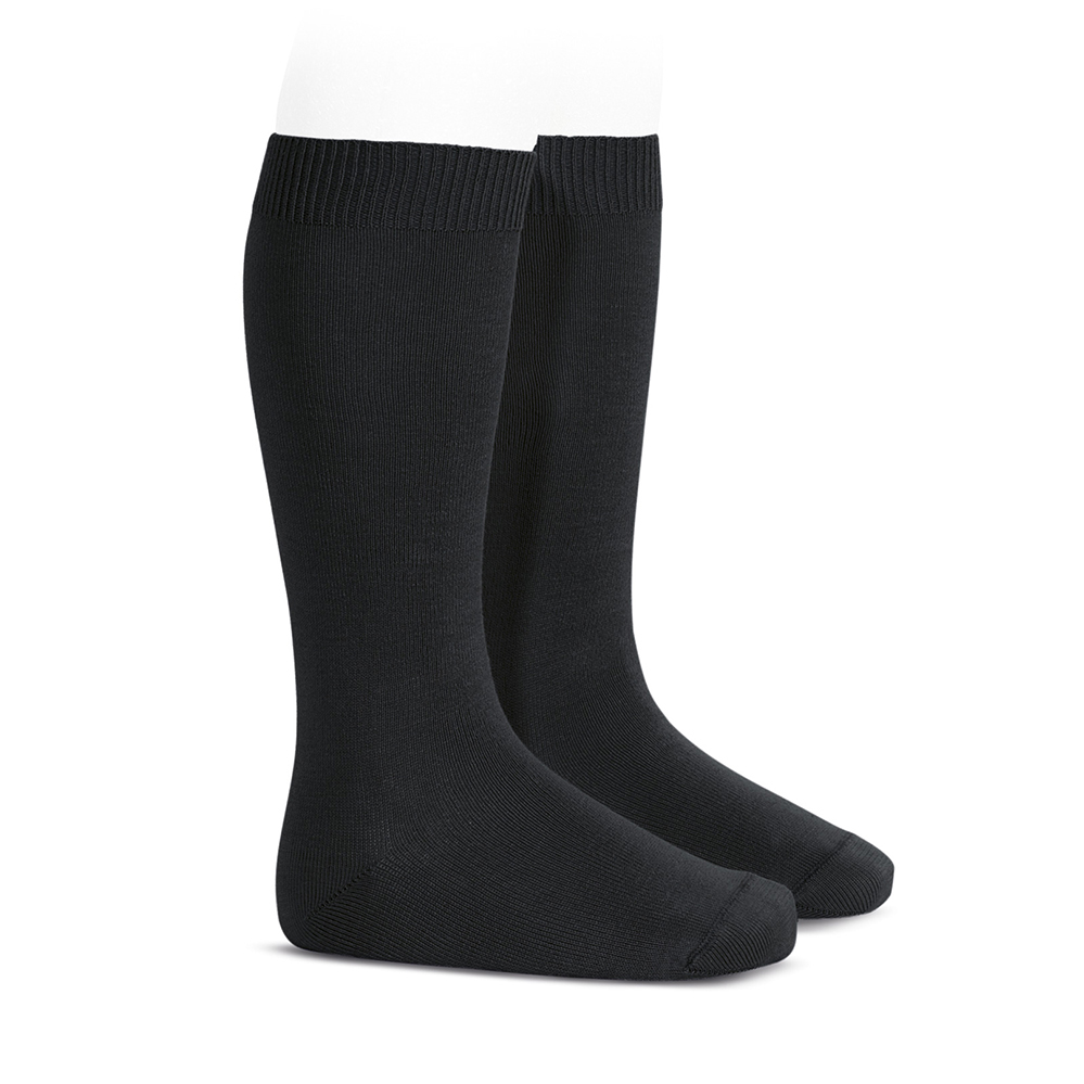 Calcetines altos de algodón en punto liso con lazo grande de terciopelo en tallas de bebé y niña de 3-6 meses a 10 años.