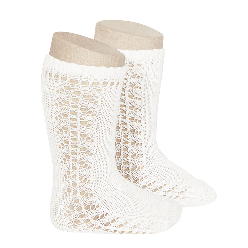 Calcetines altos de algodón cálido para bebé con detalle calado en el lateral.
