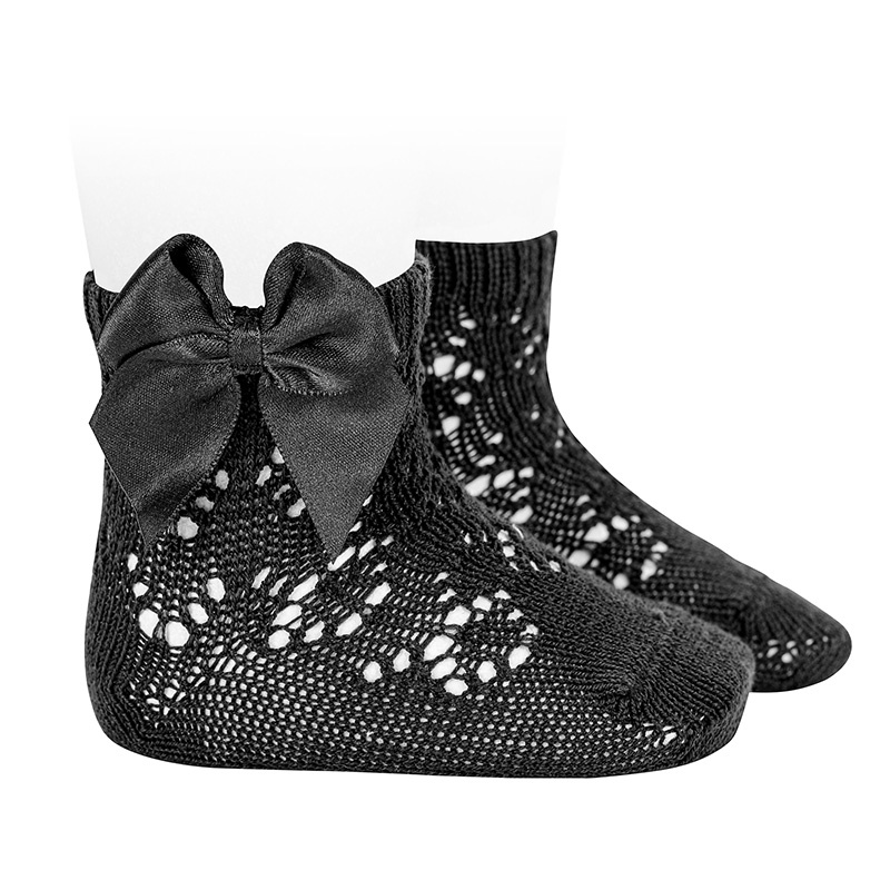 Calcetines calados de algodón perlé con lazo gross-grain en el lateral.