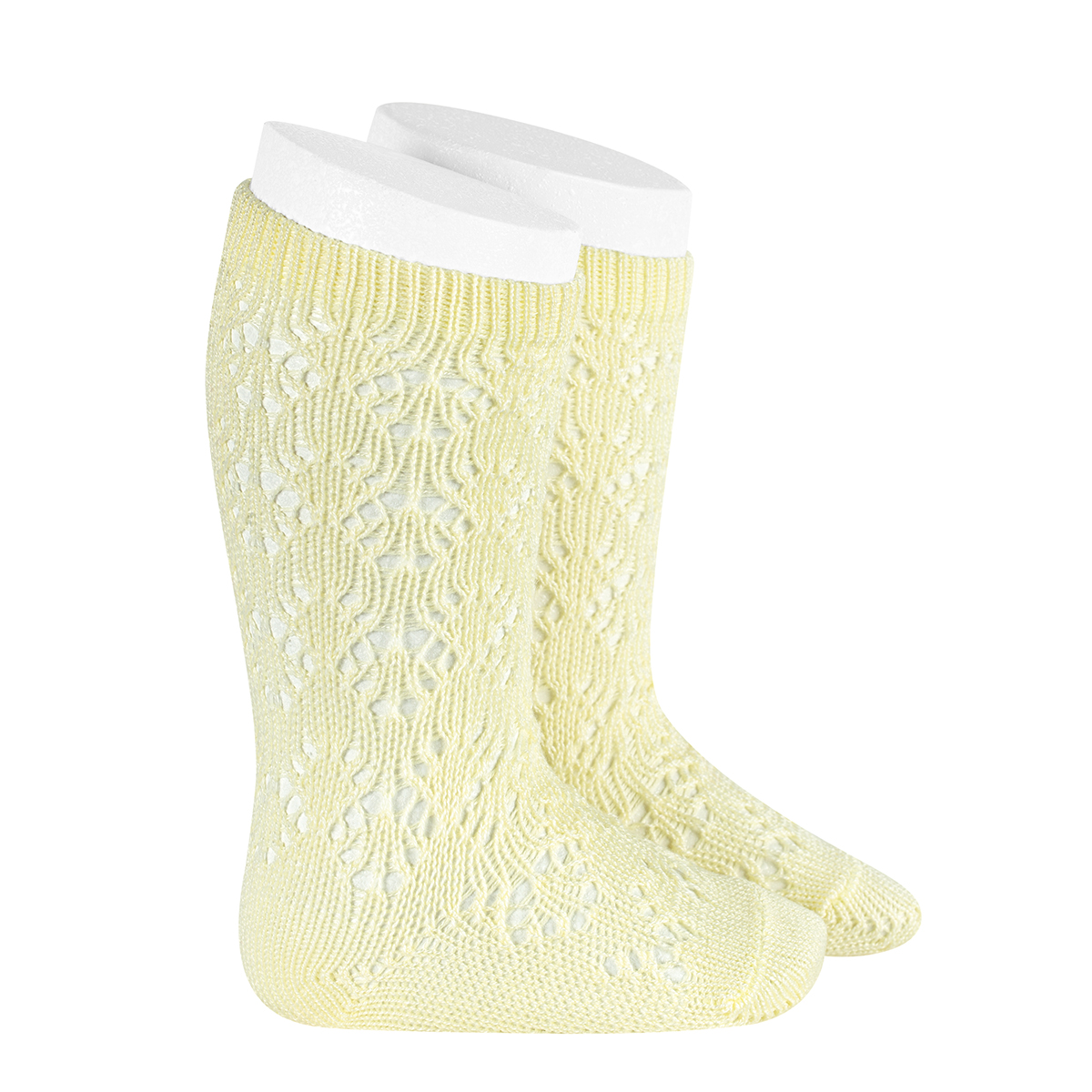 Calcetines altos de algodón perlé calado geométrico para primavera. Tallas de 0-3 meses a 8 años.