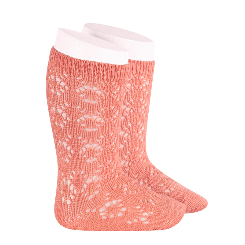 Calcetines altos de algodón perlé calado geométrico para primavera. Tallas de 0-3 meses a 8 años.