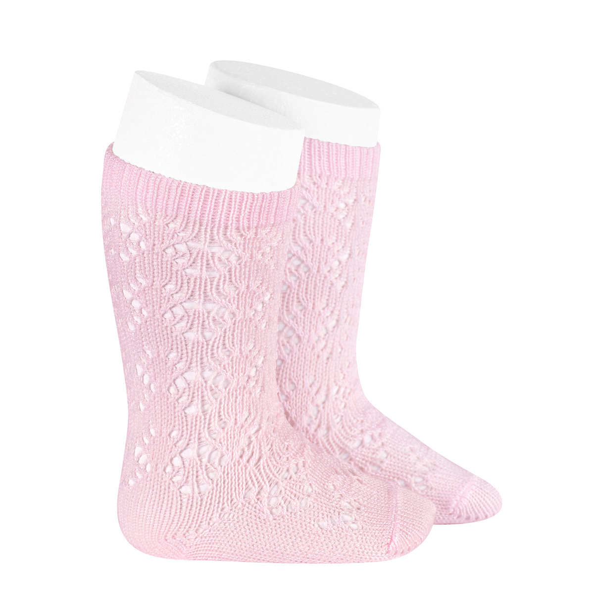 Calcetines altos de algodón perlé calado geométrico para primavera. Tallas de 0-3 meses a 8 años.