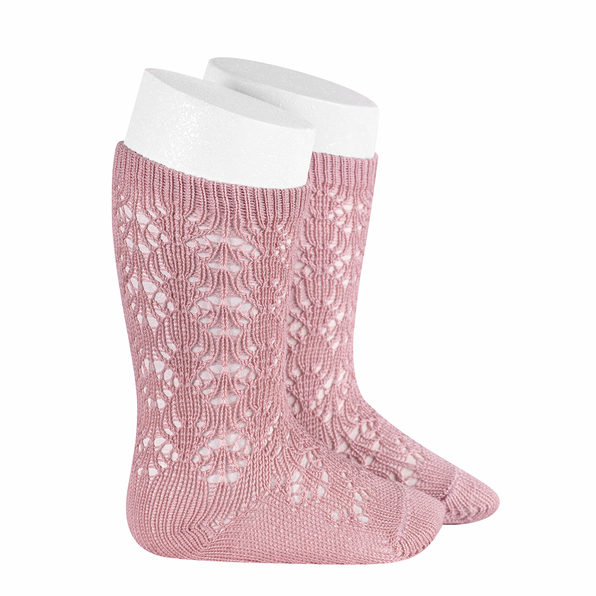 Calcetines altos de algodón perlé calado geométrico para primavera. Tallas de 0-3 meses a 8 años.
