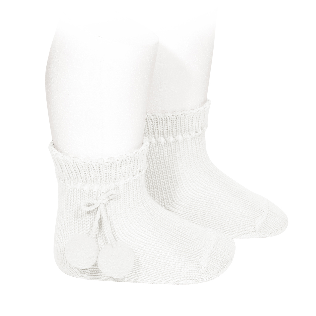 Calcetines altos 100% algodón de perlé calado en el lateral y pompón en el puño. De 3-6 meses a 6 años.