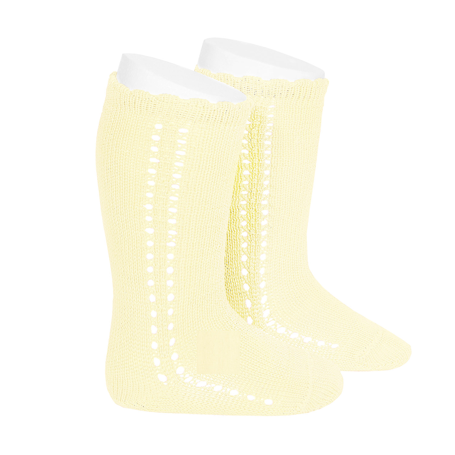 Calcetines calados altos 100 % algodón de perlé. Disponible en tallas de 0-3 meses a talla 14 años (41-43).