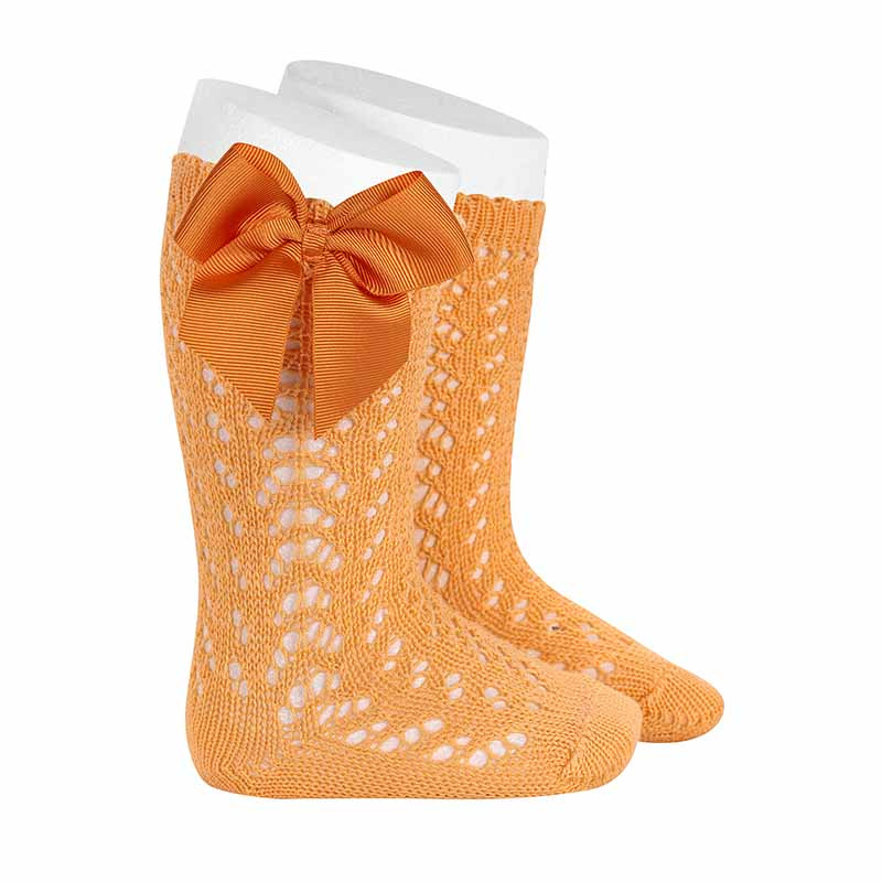 Calcetines altos calados 100% algodón perlé con lazo en el lateral. Disponible en tallas de 0-3 meses a 8 años.
