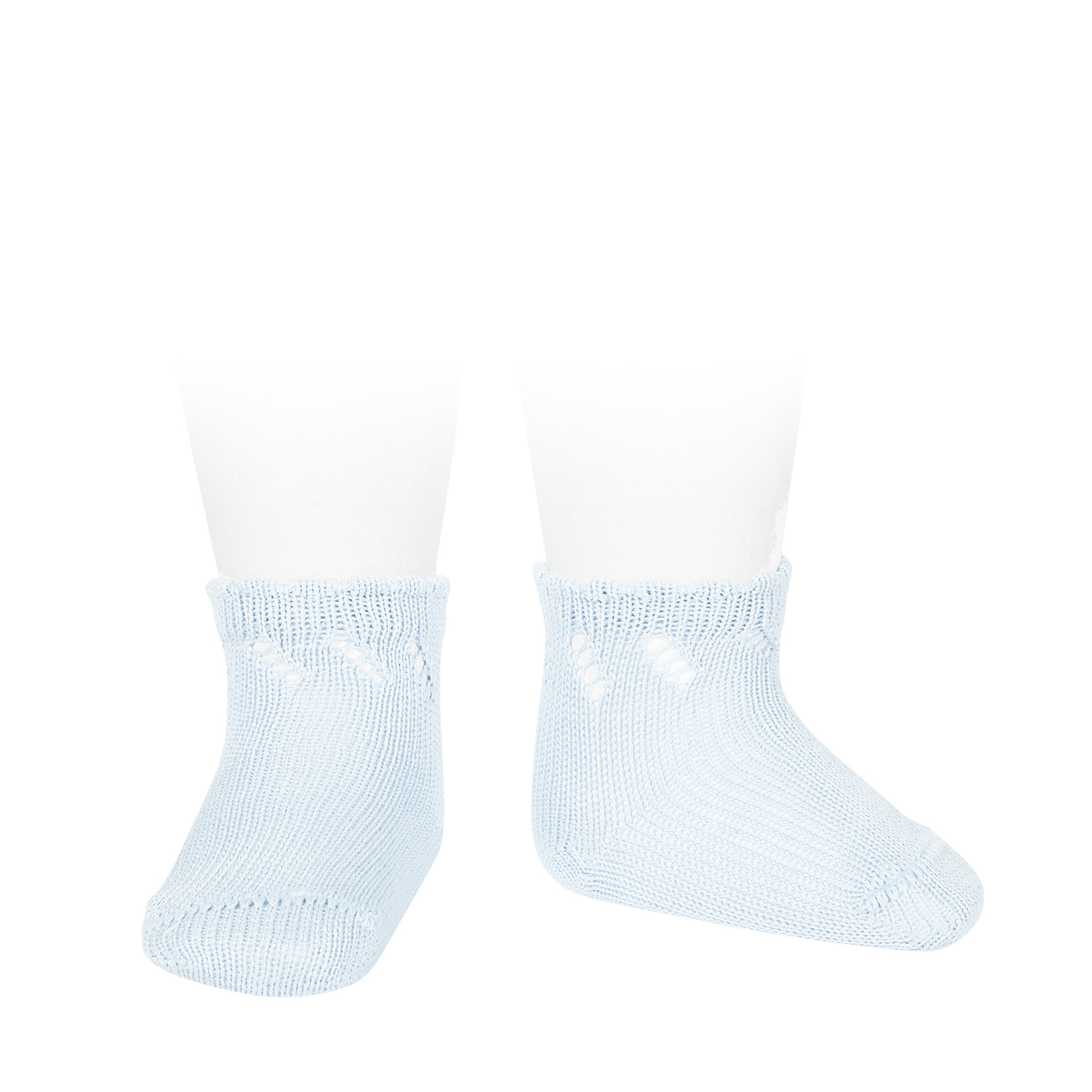 Calcetines cortos para bebé de algodón perlé. Calado en diagonal y puño de fantasía.