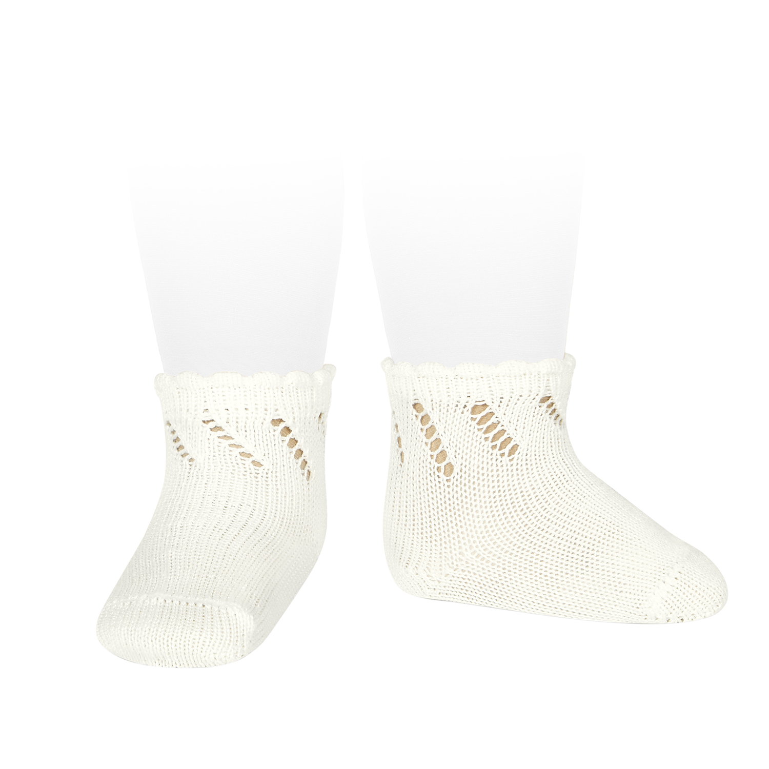 Calcetines calados de algodón perlé. Disponible en tallas de 0-3 meses a 6 años.