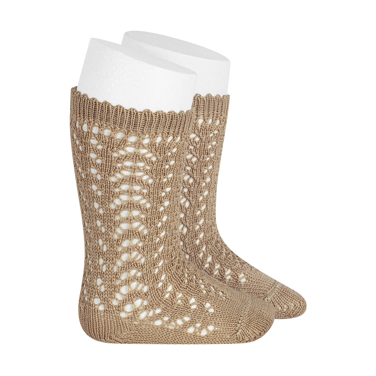 Calcetines calados altos 100 % algodón de perlé. Disponible en tallas de 0-3 meses a talla 14 años (41-43).
