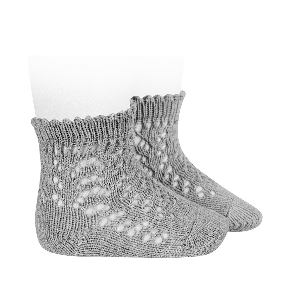 Calcetines calados de algodón perlé. Disponible en tallas de 0-3 meses a 6 años.