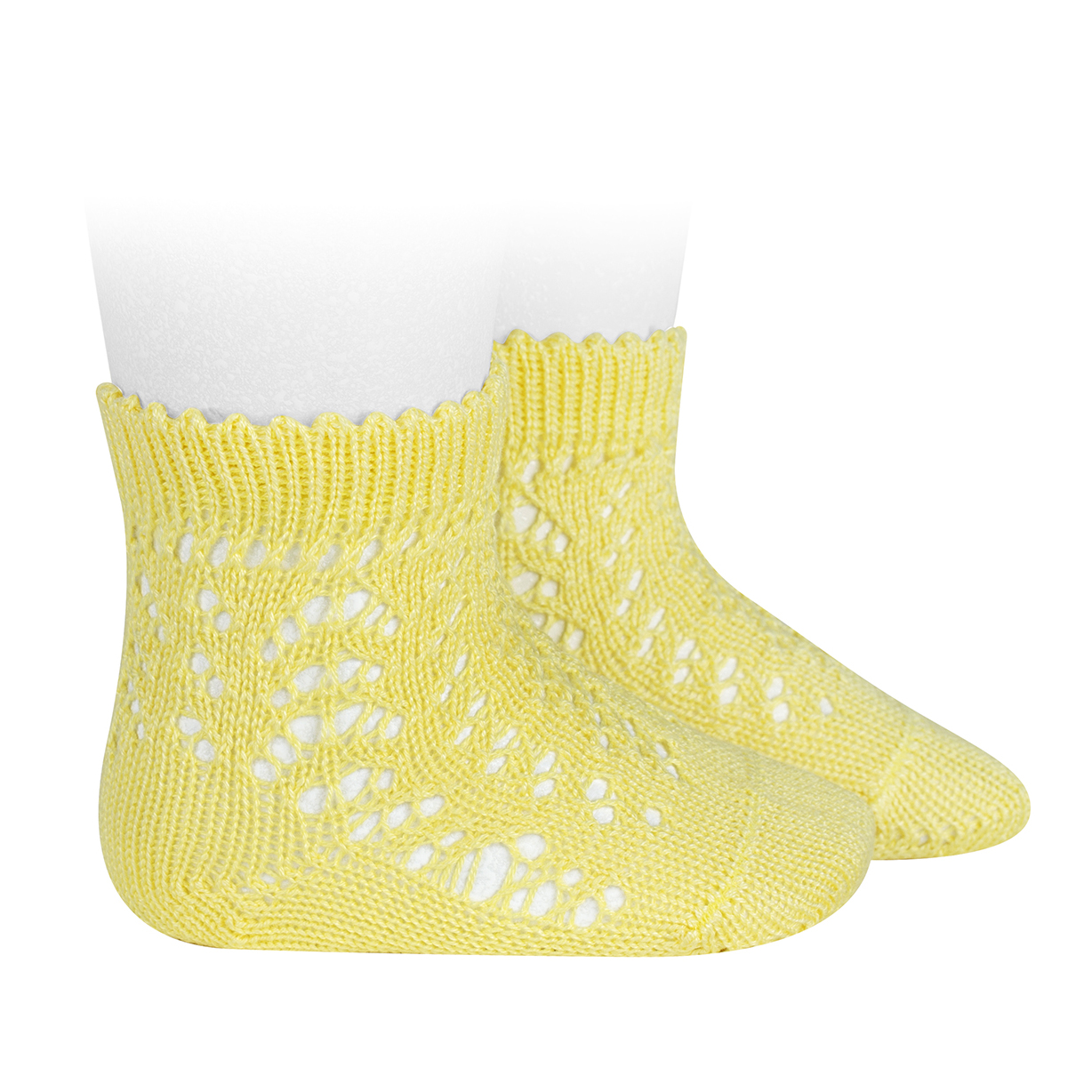 Calcetines calados de algodón perlé. Disponible en tallas de 0-3 meses a 6 años.