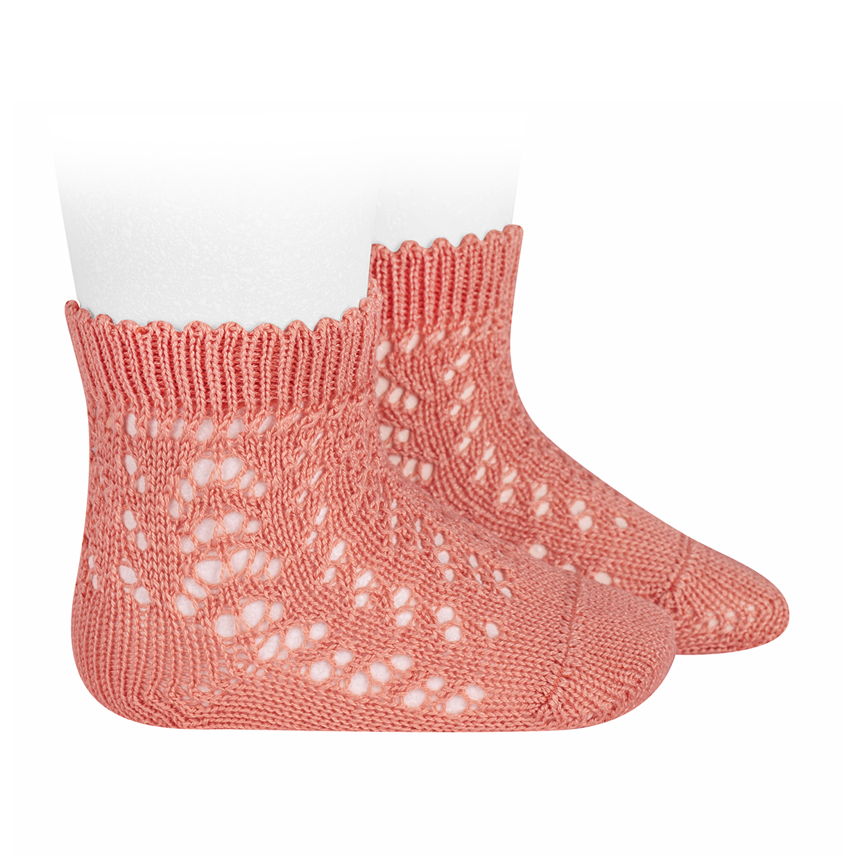 Calcetines calados de algodón perlé. Disponible en tallas de 0-3 meses a 6 años.