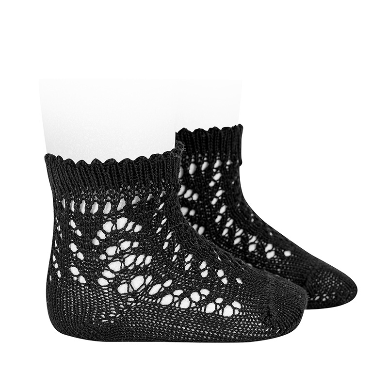 Meias de algodao perlé perfuradas PRETO