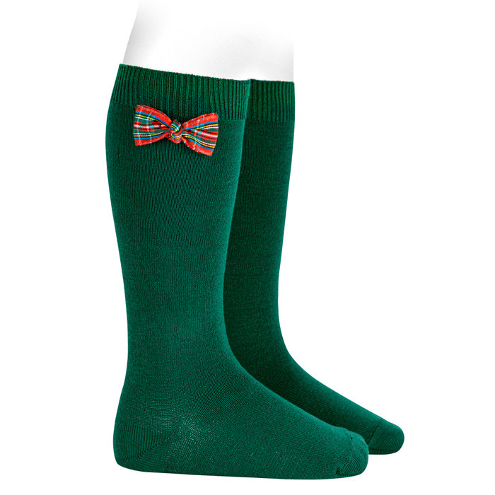 Calcetines altos con lazo de cuadros escocés. Conjúntalo con la colección de punto de lazos escoceses.