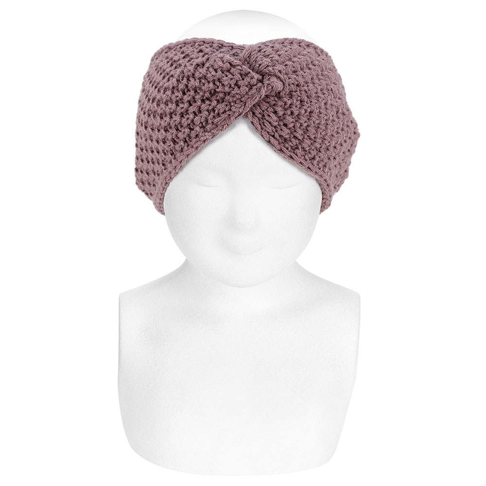 Cinta turbante de niña en punto grano de arroz con nudo frontal.